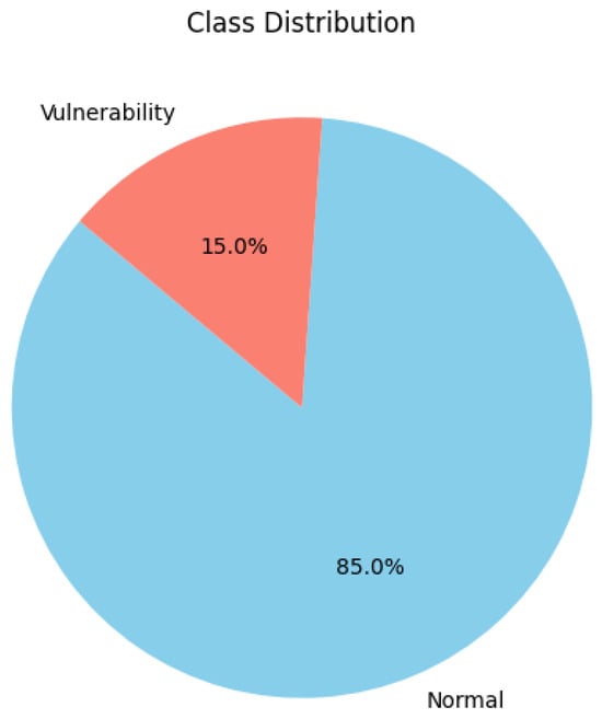 Figure 8. Class distribution between normal and vulnerability-related events, reflecting realistic imbalance.