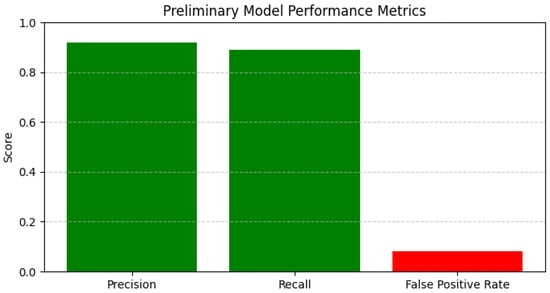 Figure 9. Preliminary model performance metrics (precision, recall, FPR) demonstrating dataset suitability for benchmarking.