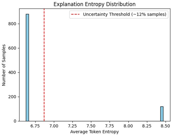 Our uncertainty quantification methods demonstrate that LLMs effectively flag ambiguous or borderline cases through elevated explanation entropy, covering approximately 12% of evaluated samples. This capability supports targeted human analyst review and reduces false positive and false negative rates, addressing operational challenges in dynamic threat environments.