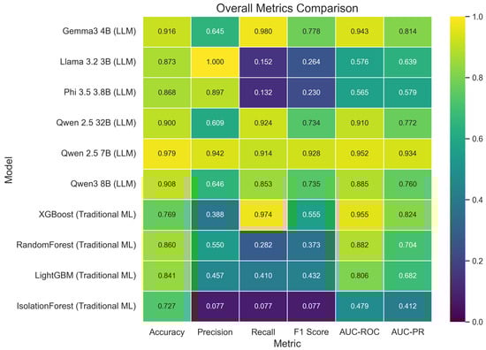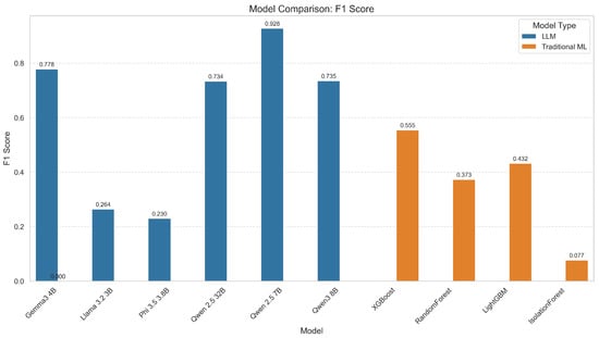 Second, we benchmarked the top-performing LLM against a range of established classical machine learning algorithms, including XGBoost, LightGBM, Random Forest, and Isolation Forest. Additionally, we conducted limited experiments with deep learning models such as artificial neural networks (ANNs), convolutional neural networks (CNNs), and long short-term memory (LSTM) networks; however, these approaches yielded suboptimal results in our anomaly detection setting. This comparative analysis highlights the relative strengths and limitations of LLMs in contrast to both traditional tree-based models and deep learning architectures for real-world anomaly detection tasks.