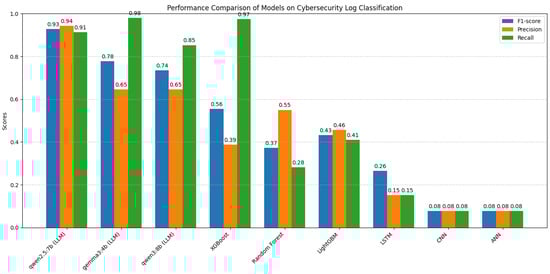 More recently, a variety of classical machine learning (ML) methods—including tree-based ensemble models such as XGBoost, LightGBM, Random Forest, and anomaly detection algorithms like Isolation Forest—have been employed to improve detection performance [3,4]. Deep learning (DL) approaches, including Artificial Neural Networks (ANNs), Convolutional Neural Networks (CNNs), and Long Short-Term Memory (LSTM) networks, have also been explored due to their ability to model complex patterns and temporal dependencies [5,6]. However, these DL models often require substantial computational resources and extensive hyperparameter tuning, and, in our experiments, they demonstrated limited effectiveness compared to tree-based methods and large language models (LLMs). Moreover, both classical ML and DL approaches frequently depend on labor-intensive feature engineering and may struggle to generalize to novel or evolving attack patterns. This motivates the exploration of LLMs, which can inherently capture rich contextual information from raw log data without extensive preprocessing, potentially offering improved adaptability and detection accuracy in real-world cybersecurity scenarios.