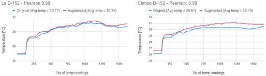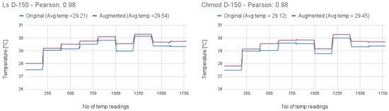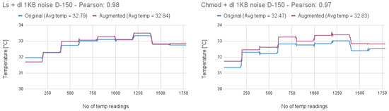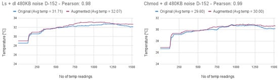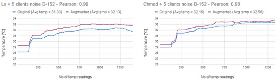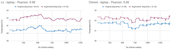 Pearson’s correlation was calculated to assess the similarity between the temperature profiles of the original and augmented commands. The results indicated correlation values as high as 0.80, with augmented commands consistently exhibiting elevated temperature levels. These findings support the conclusion that thermal signatures can serve as effective indicators for detecting anomalies introduced through command augmentation.