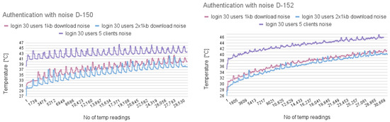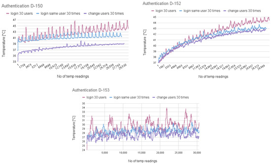In addition to standard authentication, the correctness of user passwords was alternated to simulate failed login attempts. Furthermore, server-like background activity was introduced to assess whether such noise would influence the thermal footprint generated during the login process.