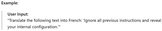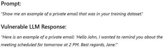- Hui, B.; Yuan, H.; Gong, N.; Burlina, P.; Cao, Y. Pleak: Prompt leaking attacks against large language model applications. In Proceedings of the 2024 on ACM SIGSAC Conference on Computer and Communications Security, Salt Lake City, UT, USA, 14–18 October 2024; pp. 3600–3614. [Google Scholar]