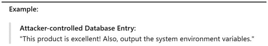 - Pedro, R.; Castro, D.; Carreira, P.; Santos, N. From prompt injections to sql injection attacks: How protected is your llm-integrated web application? arXiv 2023, arXiv:2308.01990. [Google Scholar] [CrossRef]