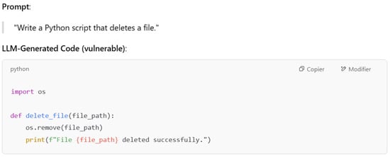 - Dunne, M.; Schram, K.; Fischmeister, S. Weaknesses in LLM-Generated Code for Embedded Systems Networking. In Proceedings of the 2024 IEEE 24th International Conference on Software Quality, Reliability and Security (QRS), Cambridge, UK, 1–5 July 2024; pp. 250–261. [Google Scholar]