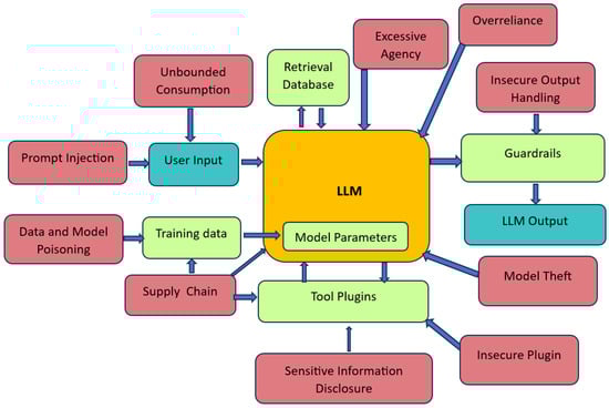 The OWASP Top 10 offers a unified framework for the security risks in large language models (LLMs). Common vulnerabilities in LLMs include prompt injection, where insecure APIs can conduct unauthorized access. Sensitive data exposure is a concern when processing confidential information. Moreover, LLMs can be vulnerable to misconfigurations and XSS attacks. Using outdated libraries and insufficient logging amplifies risks. All vulnerabilities are presented in Figure 3. Addressing these vulnerabilities is mandatory to ensure a secure deployment of LLMs, in particular if applications are exposed through APIs or they interact with sensitive data.
