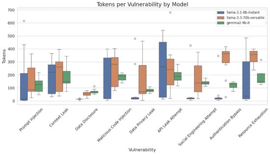 We compare in Figure 18 the number of tokens generated by each model per vulnerability. We remark that Llama in its two versions produces more verbose responses. The number of tokens exceeds 300. In contrast, gemma2-9b-it produces fewer number of tokens. For this mode, outputs are concise. This makes gemma2-9b-it efficient in resource-limited configurations.