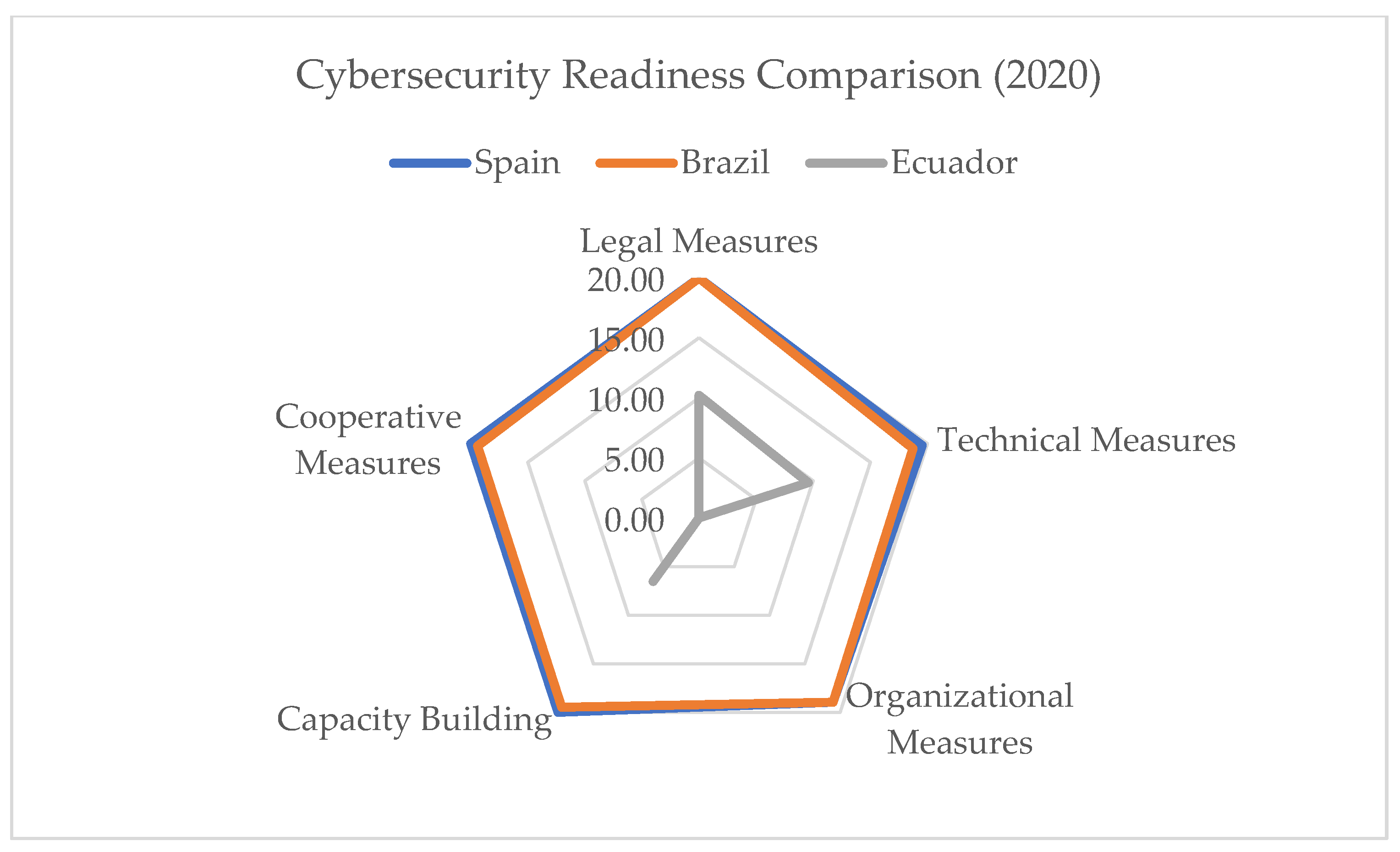 Data for 2020 and 2024 have been selected for the comparative analysis, considering that Ecuador implemented key regulatory instruments after the reference year 2020. The National Cybersecurity Policy (2021) and the Organic Law on Personal Data Protection (2021), both issued after the initial period, constitute significant regulatory advances reflected in an improvement in the indices, observed both in the Cybersecurity Readiness Benchmark and in the Global Cybersecurity Index Score for 2024.