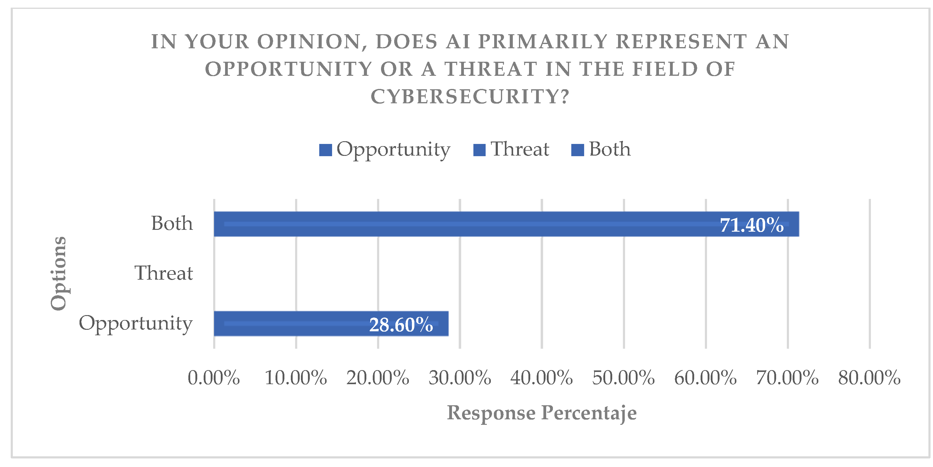 Figure 7). Regarding the “perceived duality” criterion, 71% consider AI to represent both an opportunity and a threat (
