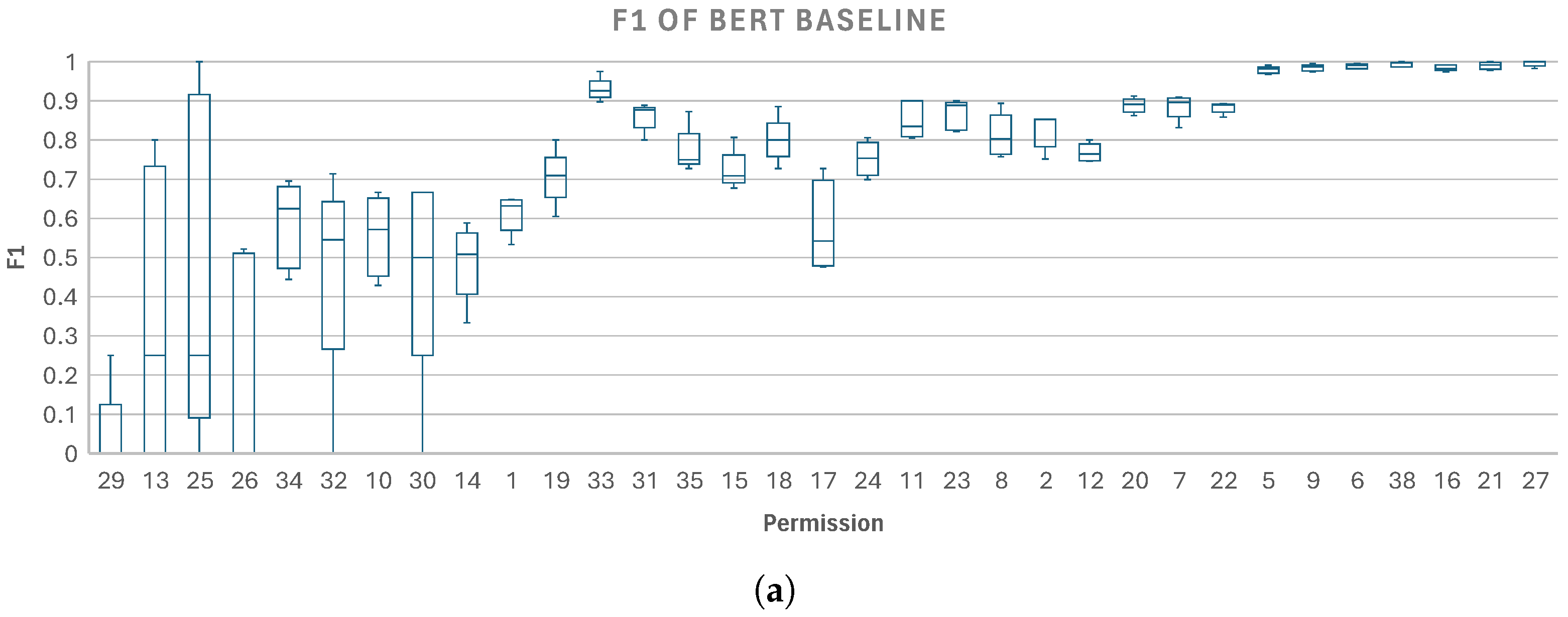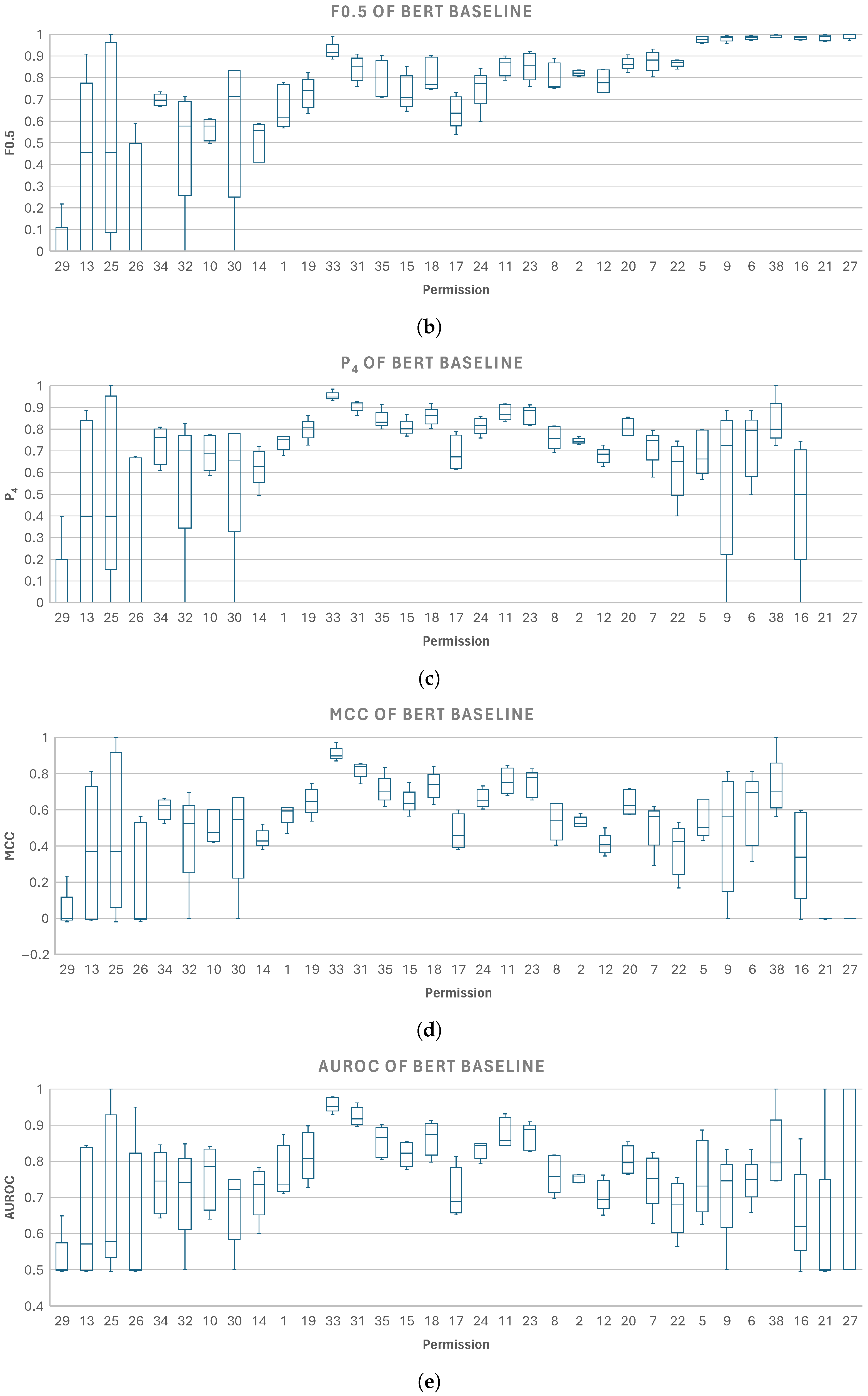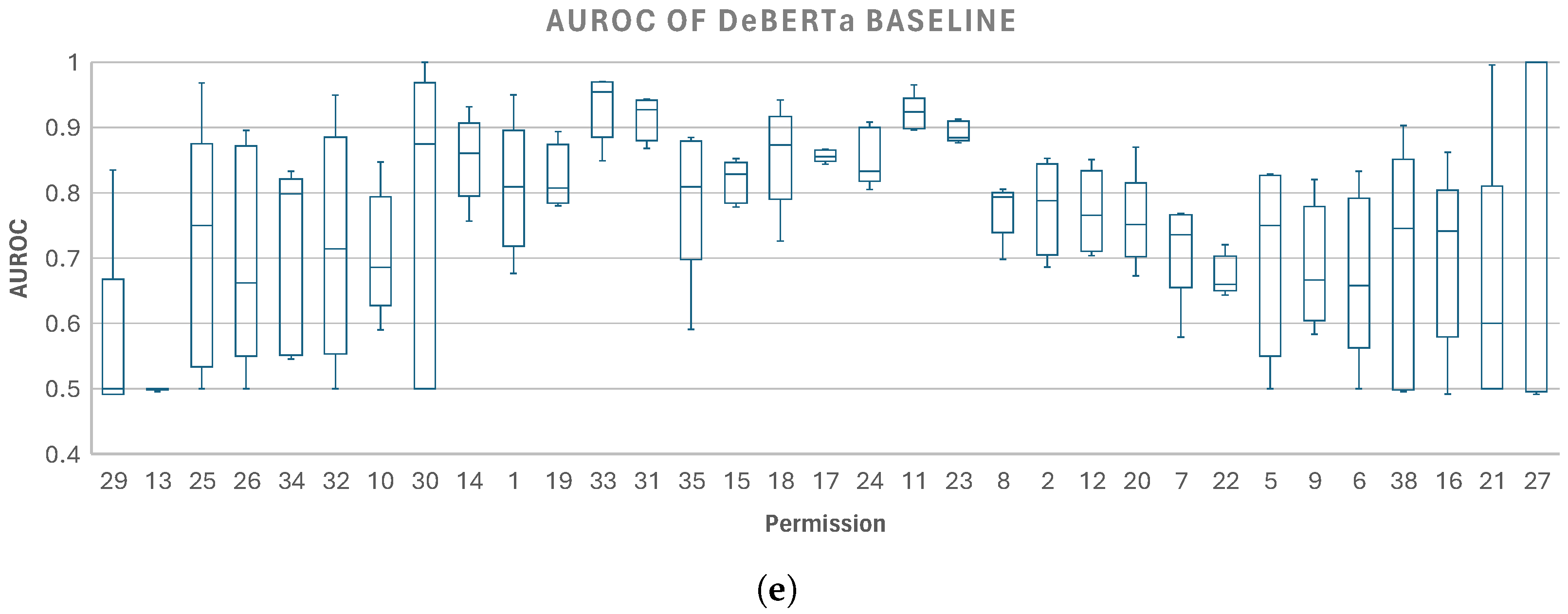 6.4. RQ3: How Does Training with Multiple Permission Requests or Utilizing Pretraining with App Descriptions Influence the Performance of the Model?