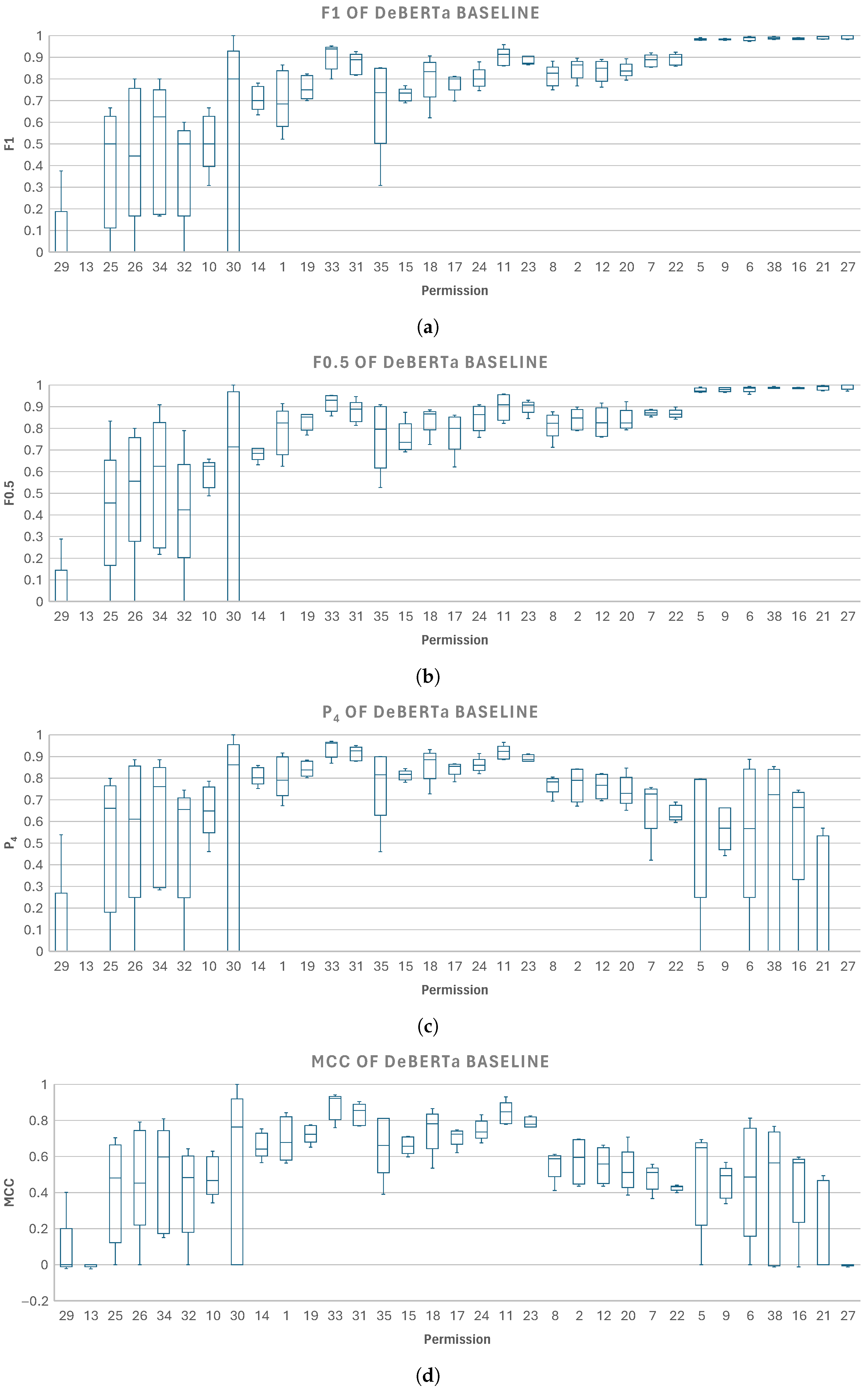 6.2. RQ1: How Do Various Language Models Perform in Quantifying the Legitimacy of Permissions Formulated as Textual Entailment?