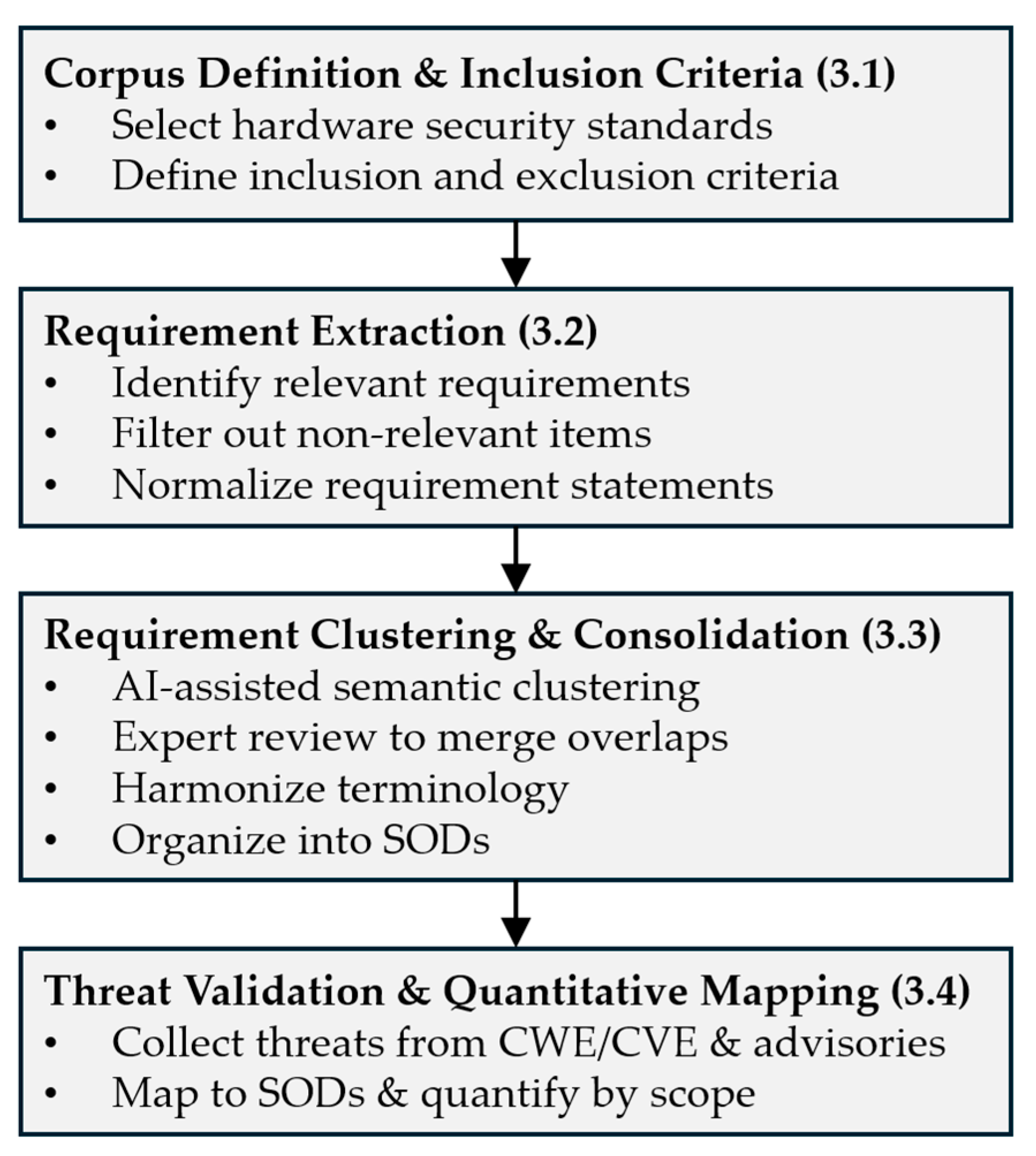 After consolidating requirements into the final 22 SODs, the taxonomy was validated against real-world hardware-related threats to ensure practical relevance and completeness. The validation process consisted of three structured steps: