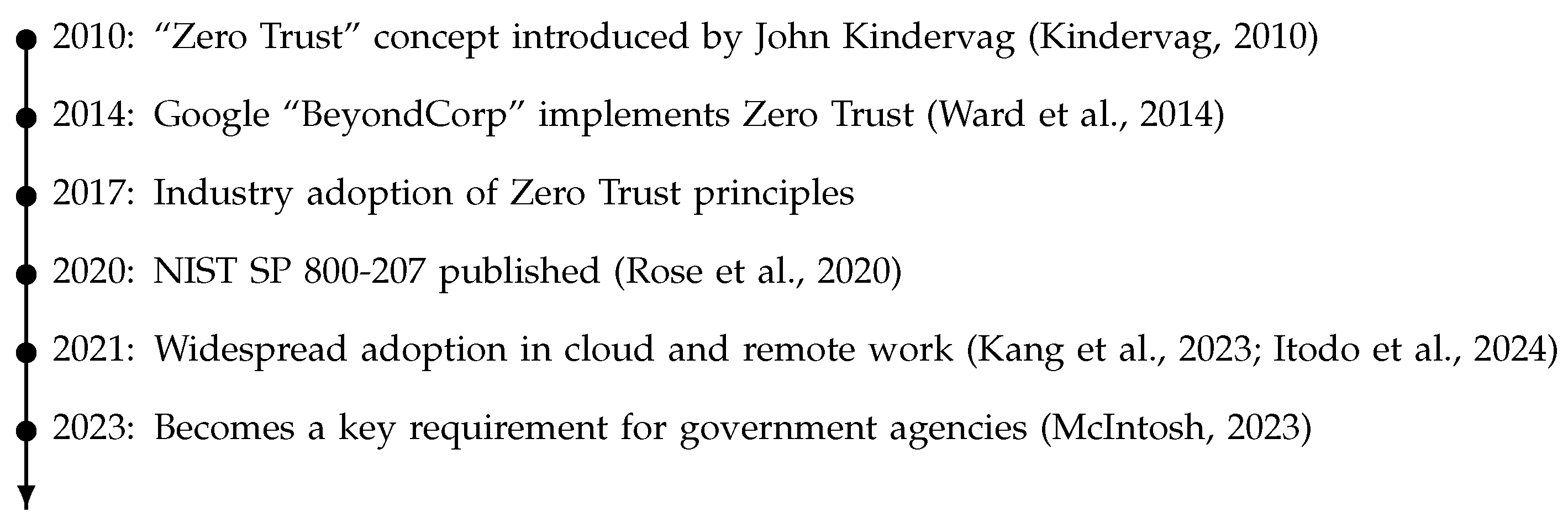 - Spencer, M.; Pizio, D. The de-perimeterisation of information security: The Jericho Forum, zero trust, and narrativity. Soc. Stud. Sci. 2023, 54, 655–677. [Google Scholar] [CrossRef]