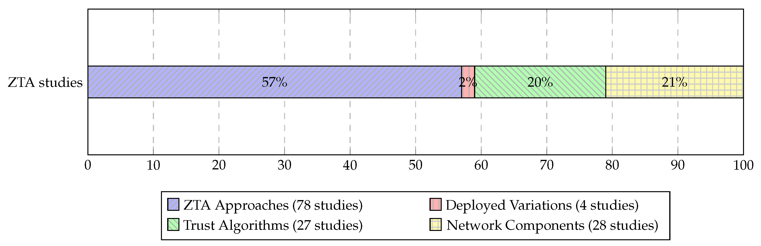 - We systematically evaluated zero-trust architecture (ZTA) research through the lens of the NIST SP 800-207 taxonomy, assessing 10 surveys and 136 primary studies published since 2022. This evaluation identified critical research gaps, including an insufficient focus on behavior-based trust algorithms, continuous monitoring infrastructures, and enclave-based deployments, all of which are essential for addressing modern cybersecurity threats.