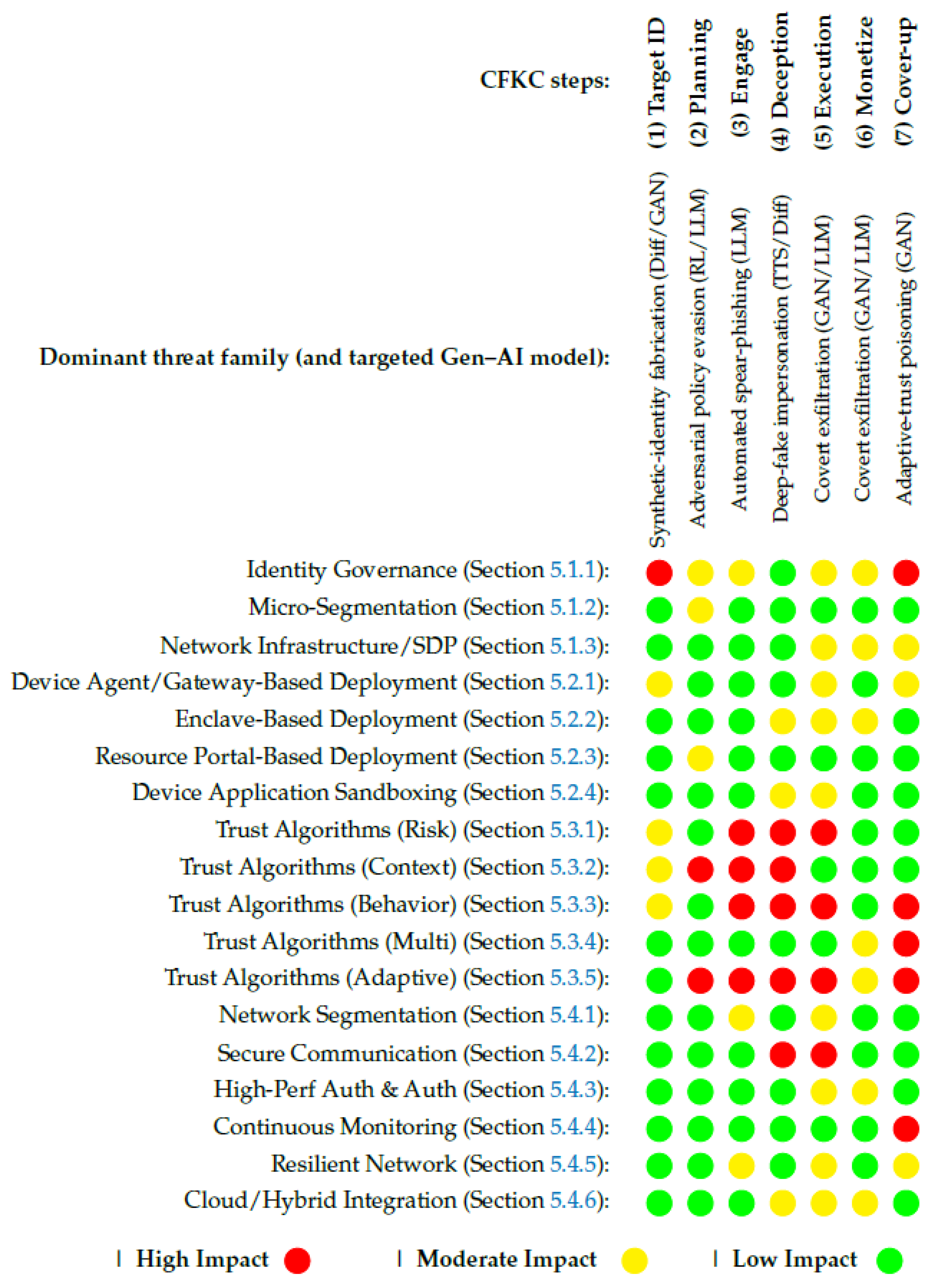 - We demonstrated how generative AI amplifies vulnerabilities in existing ZTA models, such as eroding trust mechanisms, disrupting compliance processes, and automating sophisticated attack vectors. To address these challenges, we introduced the novel CFKC framework, which maps the stages of AI-driven fraud and provides actionable insights for improving ZTA defenses against such emerging threats.