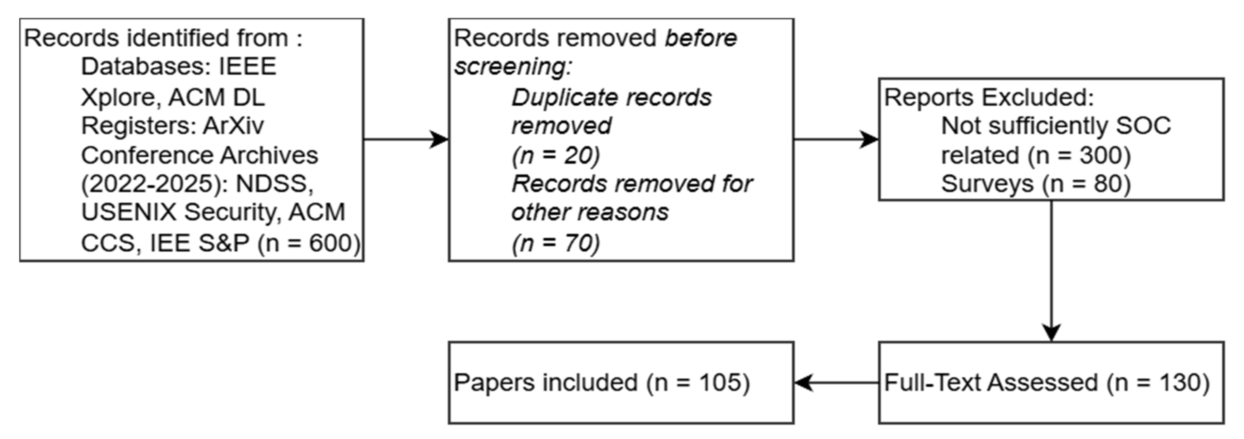 - Binbeshr, F.; Imam, M.; Ghaleb, M.; Hamdan, M.; Rahim, M.A.; Hammoudeh, M. The Rise of Cognitive SOCs: A Systematic Literature Review on AI Approaches. IEEE Open J. Comput. Soc. 2025, 6, 360–379. [Google Scholar] [CrossRef]