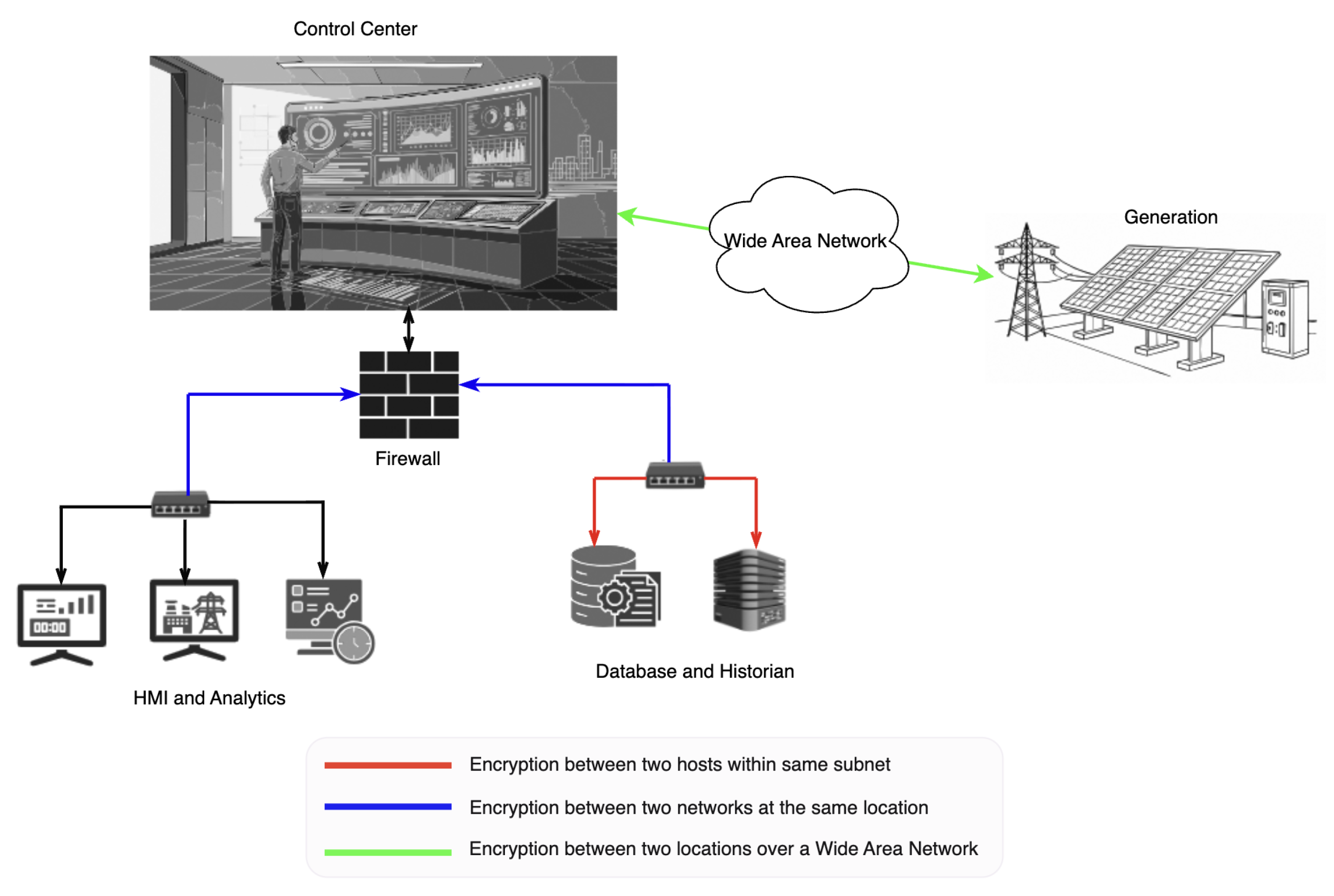 11]. These changes, while improving operational efficiency, have also introduced vulnerabilities that threat actors can exploit. As a result, encryption has become one of the key cybersecurity tools and an essential layer of defense in modern ICS architectures, helping to mitigate the growing risks to critical infrastructure. This is especially true in the smart grid, where utilities interconnect control centers, substations, field sensors, Advanced Metering Infrastructure (AMI), and Distributed Energy Resource (DER) across public or shared networks.