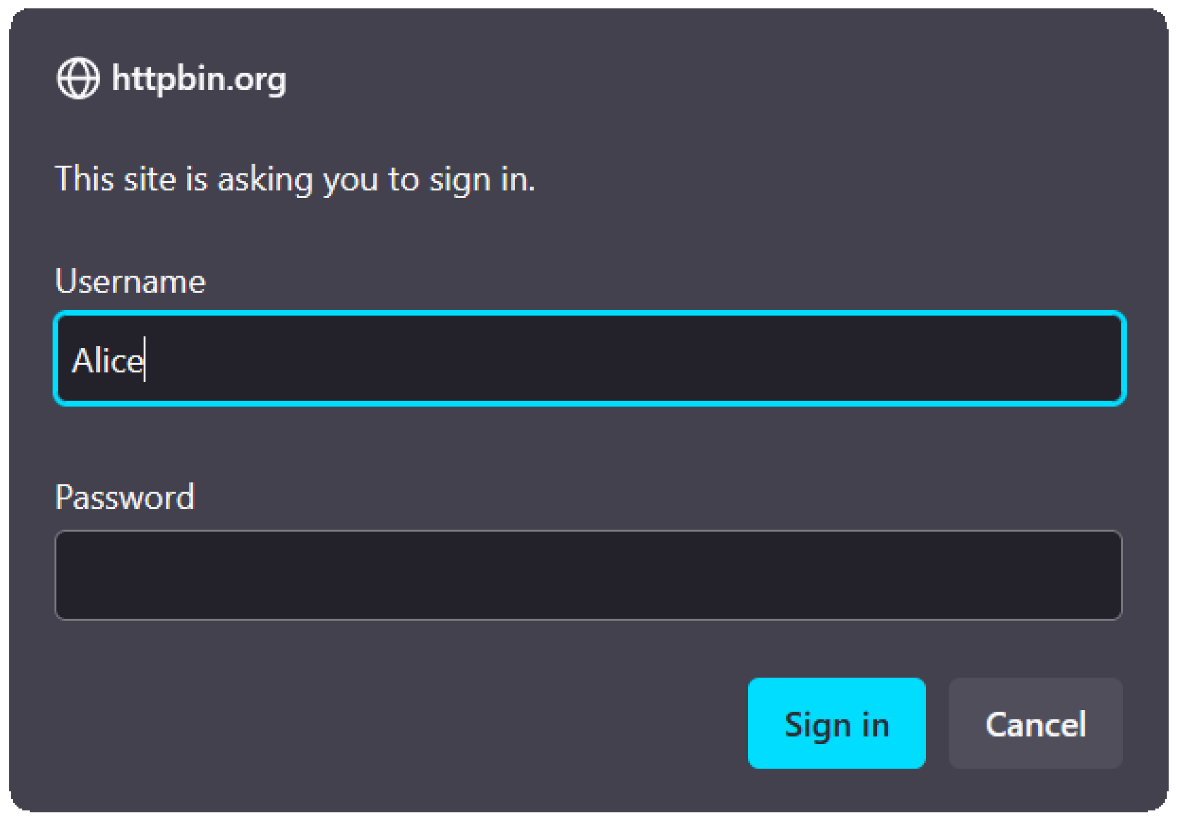 10], Section 5.8). Because the connection is unencrypted, the attacker can downgrade the authentication scheme to use HTTP basic access authentication, which transmits the password in cleartext with simple Base64 encoding. This manipulation is not readily detectable to the end user, since the HTTP authentication dialog is rendered identically regardless of whether basic or digest authentication is in use. Furthermore, the appearance is not customizable by the page but is always rendered as a generic popup login dialog, as shown in