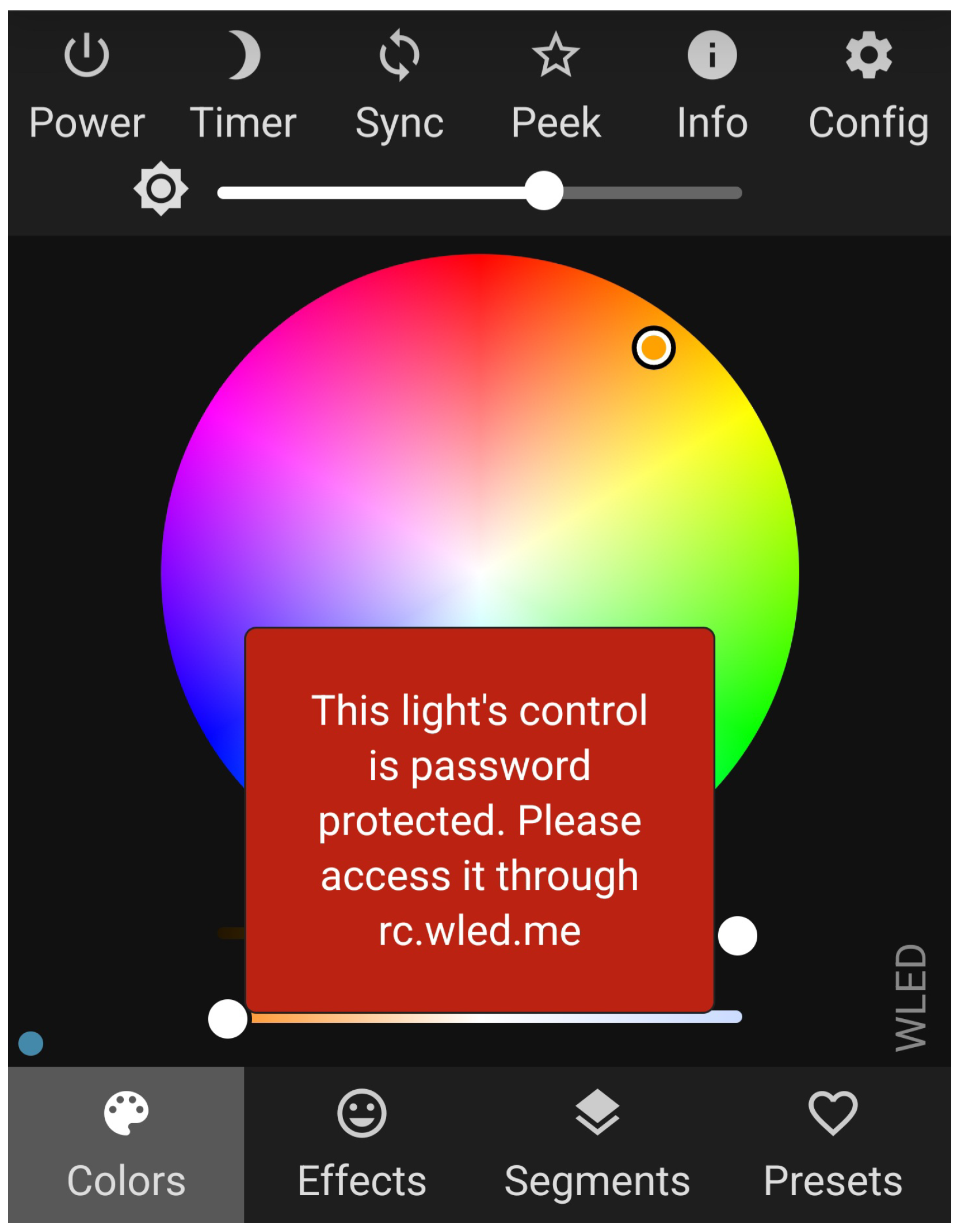 Section 2.5. The user is unable to control the light by directly visiting the address of the WLED instance, as depicted in