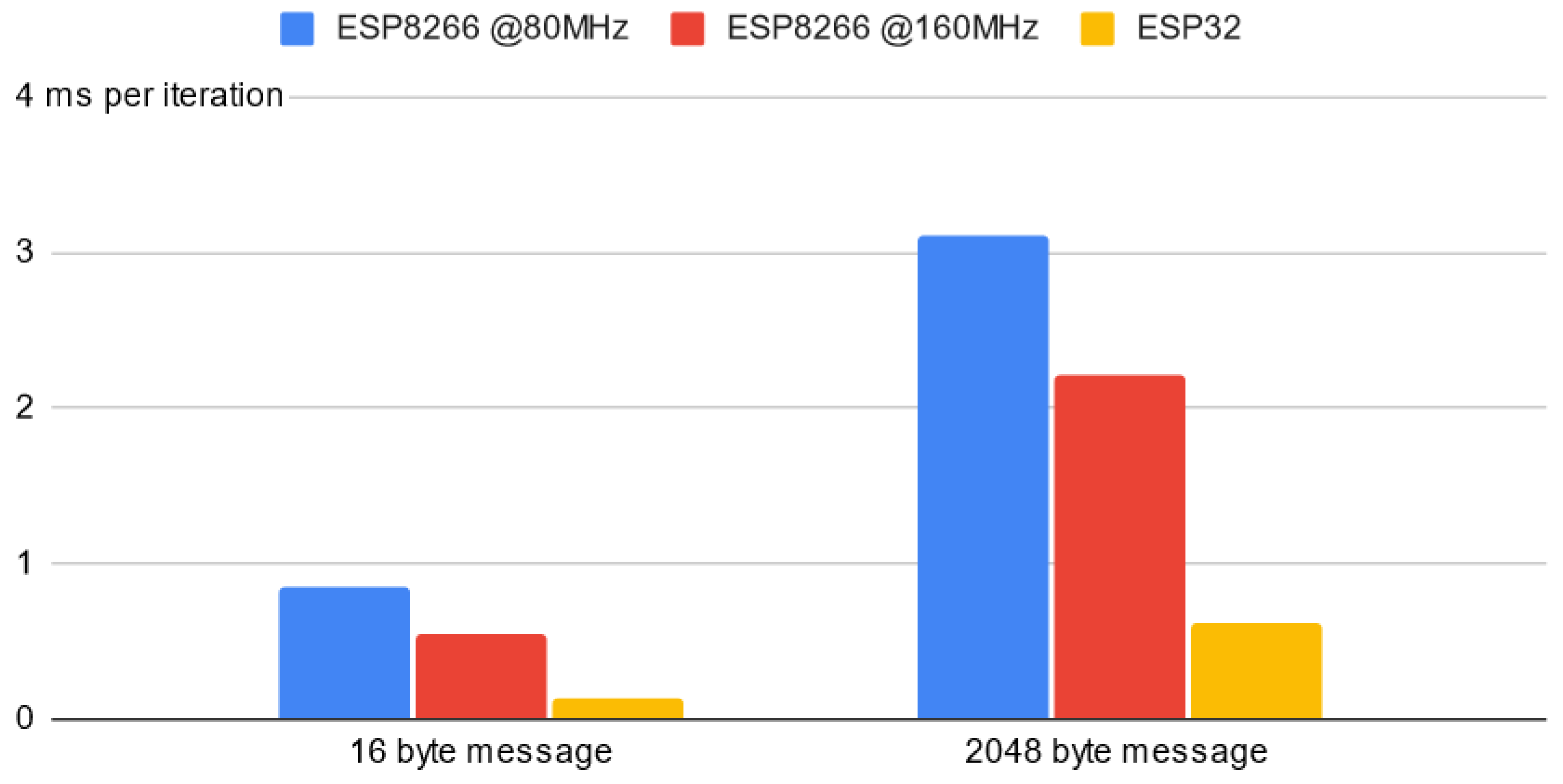 Section 4.5. For the ESP8266, no practically usable TLS server implementation was found to be available, which is to be expected due to its severely limited memory. Furthermore, comparisons with more lightweight IoT protocols based on, e.g., lightweight symmetric protocols such as Ascon [