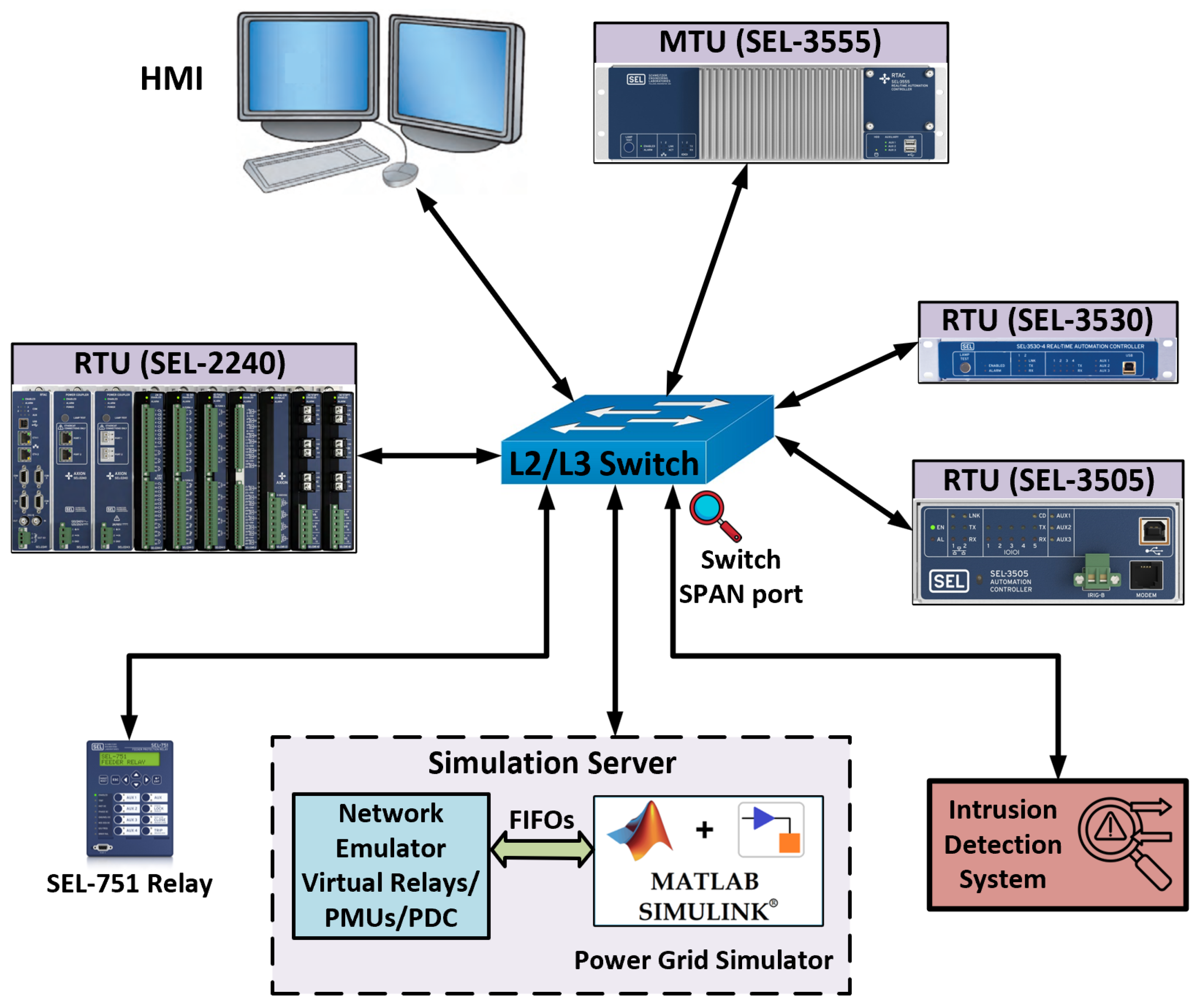 Demonstration of the efficacy of the proposed methodology with several attack scenarios on a hardware-in-the-loop (HIL) testbed, which includes both physical and virtual power devices, interfaced to a dynamic power system simulator.