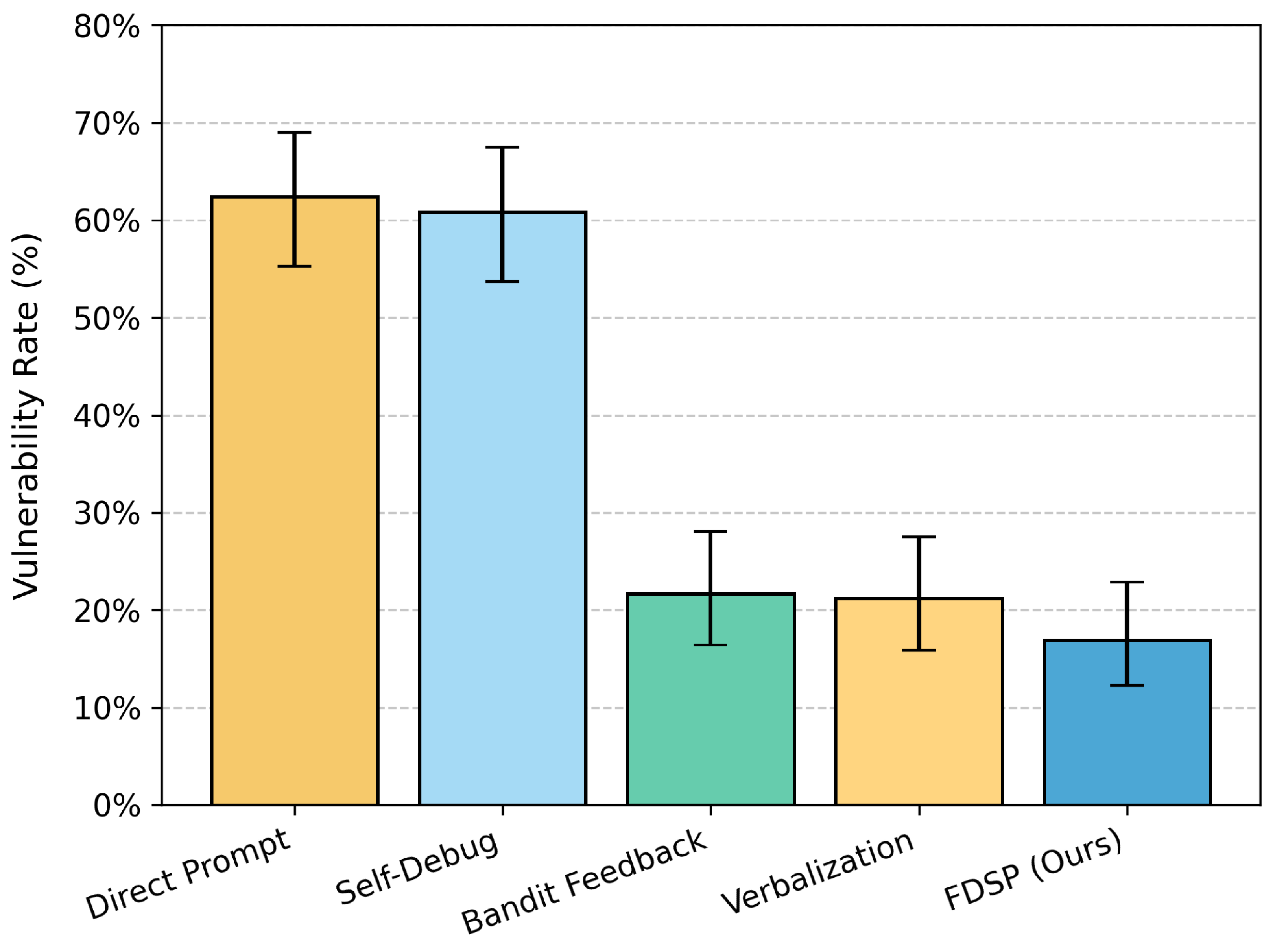 - Across three benchmarks, including PythonSecurityEval, using GPT-4, GPT-3.5, and CodeLlama, we find that FDSP improves patch success rates by up to 17.6% against baselines.