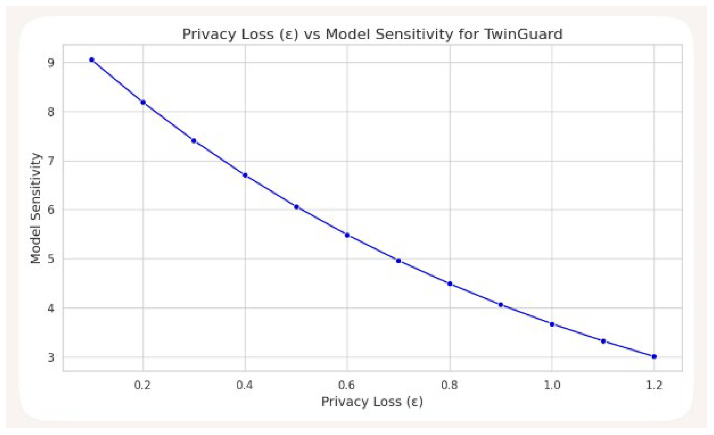 To optimise detection performance while maintaining strong privacy guarantees, TwinGuard uses an adaptive privacy budgeting strategy. This approach dynamically allocates the differential privacy budget (ε) based on the sensitivity of the threat being modelled and the phase of model training. By adjusting ε in response to contextual risk, TwinGuard balances the competing demands of utility and confidentiality.