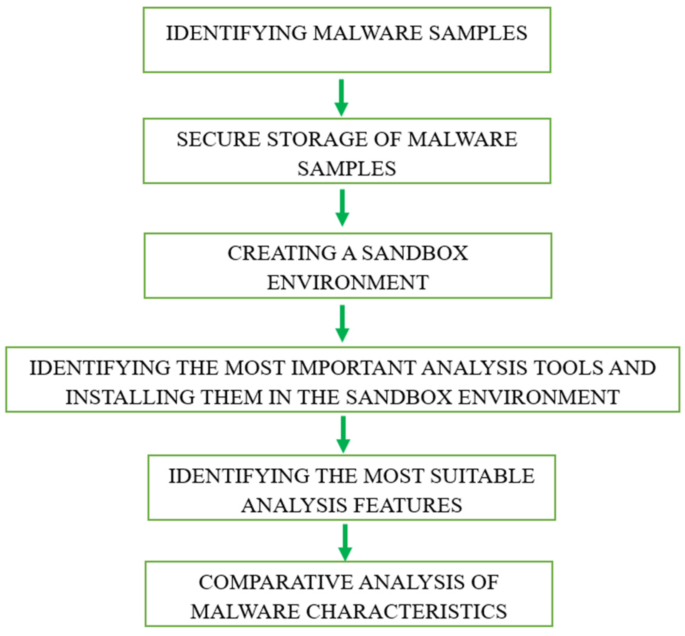 To enable safe and systematic examination, a sandbox environment was established for analyzing the malicious files. Within this, several commercial and open-source tools were installed, and several analysis scenarios were tested. In this way, the most important aspects of malicious files were identified. The primary objective of the experimental environment was to identify effective methodologies for the comparative analysis of malicious files, with the ultimate goal of integrating the resulting features into an efficient database for future automated detection systems.