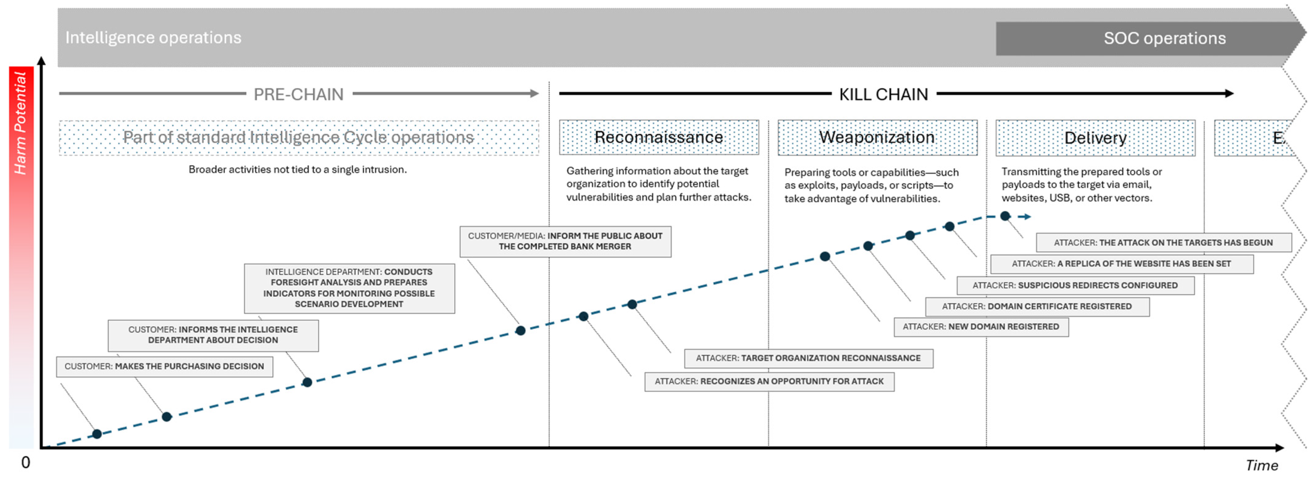 | The customer informs the intelligence team about the upcoming bank merger | Intelligence team prepares foresight analysis, configures data sources, defines indicators (keywords, brand permutations) |