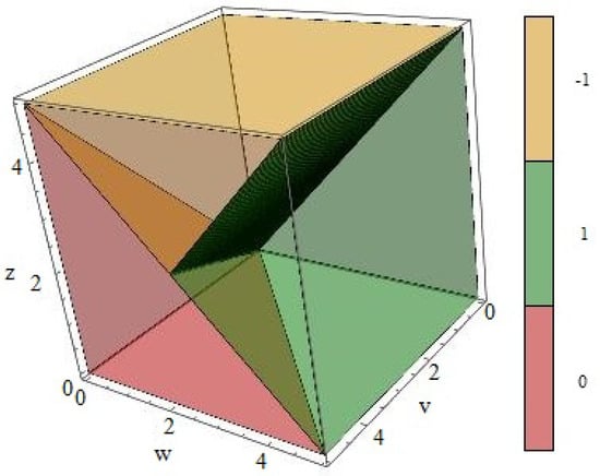 is a solution of . The real and imaginary part of have been plotted in Figure 4a,b, respectively, as functions of and in the topologically non-trivial regime, i.e., . The real part of is strictly when and decreases with increasing w and z. We will show later that in the regime , the coefficient amplitude for any edge state is strictly monotonic. The imaginary part equals to zero when which denotes the boundary of topological phase transition while decreases along with increasing w and z.