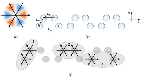 (a) A cross-section of the octupole moment excited on each particle; (b) Arrangement of the nanoparticle array; (c) Three major interactions between neighboring particles, 1, 2 and 3, which mimic the hopping amplitudes, v, z and w respectively. The strengths of these interactions can be controlled by varying the distances, , , , and angle .