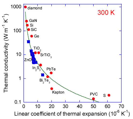 - Slack, G.A. Nonmetallic crystals with high thermal conductivity. J. Phys. Chem. Solids 1973, 34, 321. [Google Scholar] [CrossRef]