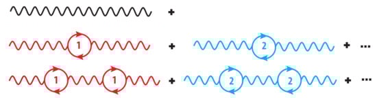Since contains all powers of , it incorporates summation over all numbers of pairs as sketched in Figure 1 and used in the calculation of (14). When restricted to an energy scale , the sum is over all fermions of mass less than [31,32,33].