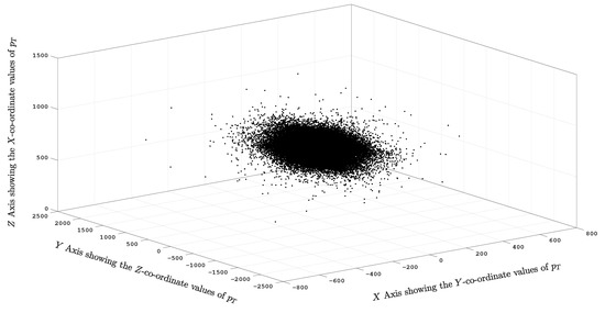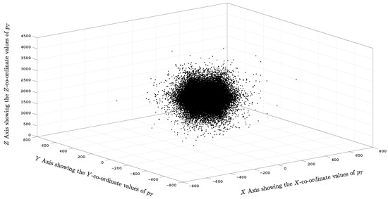 - The components of the in the X coordinate are taken as the set of x-values, corresponding Y coordinate values are taken as set of y-values and Z coordinate values are taken as set of z-values. This way we get a 3-dimentional space made up of the set of -values which actually corresponds to X,Y and Z coordinate components of the values. We denote this data space as . Figure 5 shows the pattern of the data space