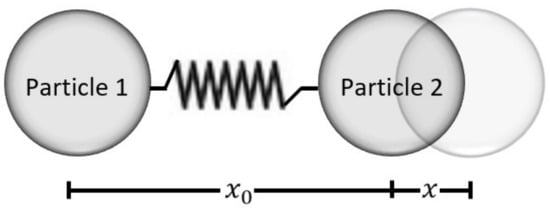 Consider the pair of particles of Figure 2. They have a simple harmonic oscillator behavior; i.e., the force between them depends on a displacing distance that is counted from an equilibrium position .