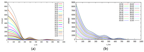 Aristov, V.V.; Stroganov, A.V.; Yastrebov, A.D. Simulation of Spatial Spread of the COVID-19 Pandemic on the Basis of the Kinetic-Advection Model. Physics 2021, 3, 85-102. https://doi.org/10.3390/physics3010008