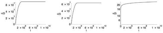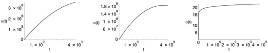 Figure 3, the space starts its evolution in the early stage in a similar way, but then enters a different asymptotic behavior which is defined by the signs of the coefficients and does not correspond to the observable universe. As a result, one obtains an infinitely exponentially growing space endowed with significant curvature.
