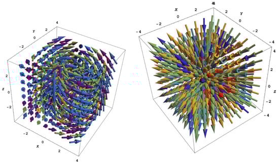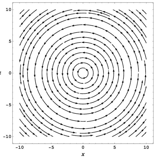 satisfies Equations (31) and (34). Then, the velocity and vorticity fields read, respcetively:
