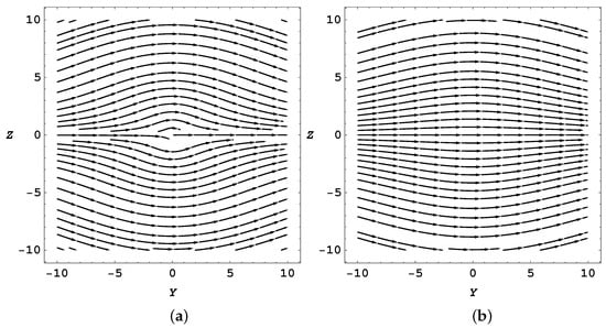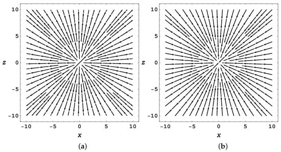 The velocity field in the planes (a) and (b) as per Equation (54).