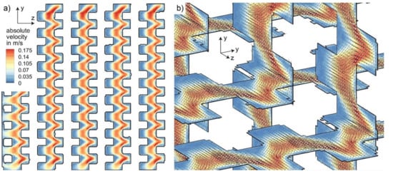 - Meinicke, S.; Möller, C.-O.; Dietrich, B.; Schlüter, M.; Wetzel, T. Experimental and numerical investigation of single-phase hydrodynamics in glass sponges by means of combined µPIV measurements and CFD simulation. Chem. Eng. Sci. 2017, 160, 131–143. [Google Scholar] [CrossRef]