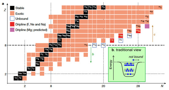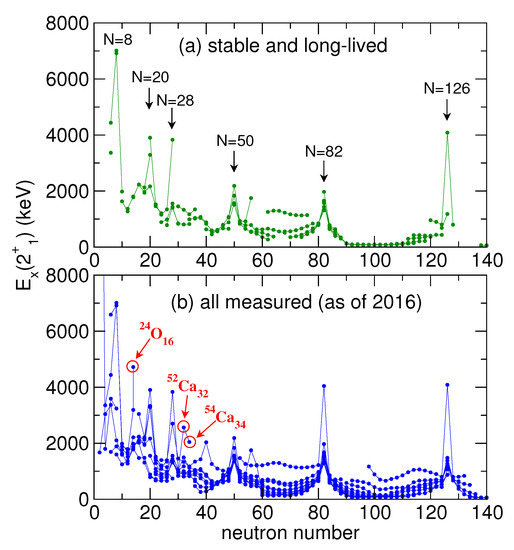 - Janssens, R.V.F. Elusive magic numbers. Nature 2005, 435, 897–898. [Google Scholar] [CrossRef]