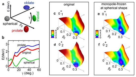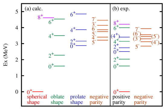 - Tsunoda, Y.; Otsuka, T. Triaxial rigidity of 166Er and its Bohr-model realization. Phys. Rev. C 2021, 103, L021303. [Google Scholar] [CrossRef]