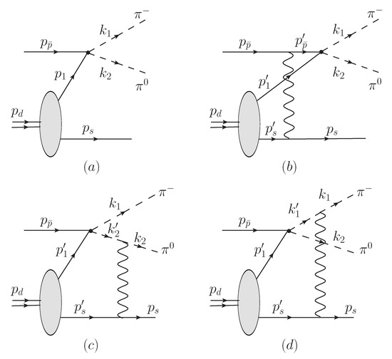 , antiproton, the intermediate neutron, and the spectator proton, respectively.