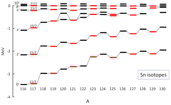 Indeed, discontinuities in yrast state energies persist throughout the open-shell,