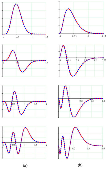 Table 1. The red solid trace is the finite-series approximation (15), whereas the superimposed blue dotted trace is produced by a robust numerical routine that gives a highly accurate evaluation of the wavefunction. The routine evaluates a normalized eigenvector of the matrix wave equation using the corresponding eigenvalue in addition to a set of eigenvalues of an abbreviated submatrix. Such evaluation avoids direct computation of eigenvectors of matrices that could result in reduced accuracy and/or convergence, especially for large matrix sizes. The accuracy is further enhanced due to the tridiagonal matrix representations of the wave operator in the TRA. In such representations, one is at liberty to utilize various robust computational packages specialized for use with such matrices in which Gaussian quadrature, continued fractions, and other tools are available. The figure shows a very good match with about