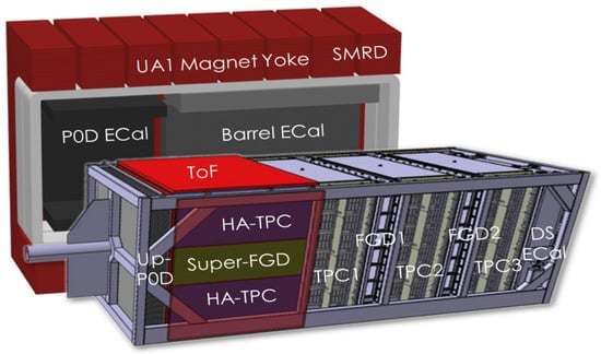 - Abe, K. et al. [T2K Collaboration]. T2K ND280 upgrade—Technical Design Report. arXiv 2019, arXiv:1901.03750. [Google Scholar] [CrossRef]