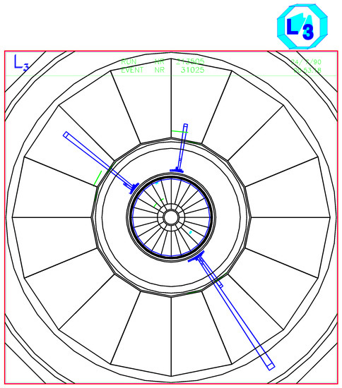 The event display of an event captured in the L3 detector. at the Large Electron-Positron collider, LEP.