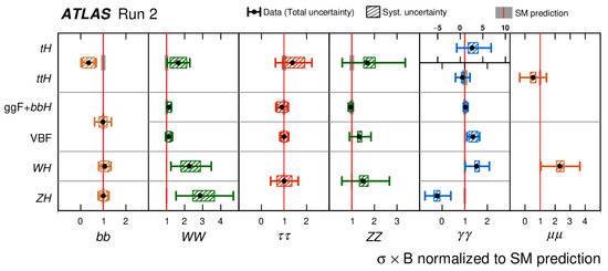 - ATLAS Collaboration. Observation of a new particle in the search for the Standard Model Higgs boson with the ATLAS detector at the LHC. Phys. Lett. B 2012, 716, 1–29. [Google Scholar] [CrossRef]