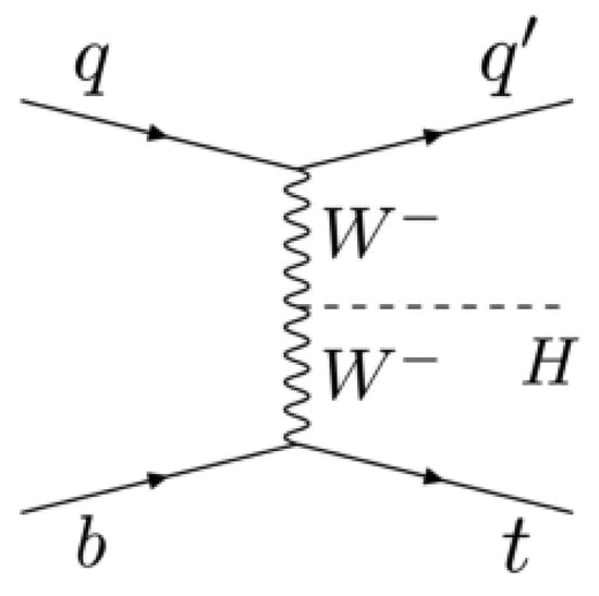 - Sirunyan, A.M. et al. [CMS Collaboration] Search for associated production of a Higgs boson and a single top quark in proton–proton collisions at = 13 TeV. Phys. Rev. D 2019, 99, 092005. [Google Scholar] [CrossRef]